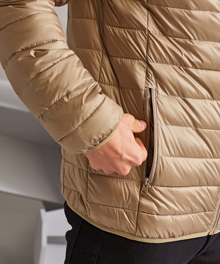 The tailored cut of this jacket combined with the horizontal stitching creates a stylish yet modern look. Artificial down will keep you warm in the colder months yet is light enough to take you into Spring. This fashionable style features the added benefit of a 'stuff bag' to store the jacket away when the weather brightens up.
