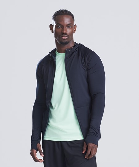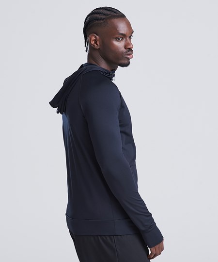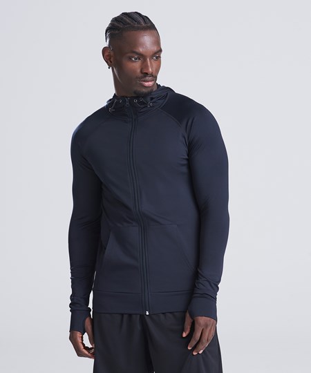 Push your limits with this innovative zoodie. Dual weights allows you to focus on your workout goals. When the nights get chilly or you need something to throw on to and from the gym, the cool sports zoodie combines wicking performance with lightly brushed fabric on the body. Adjustable attached hood protects from the elements while the raglan sleeves and thumb holes offer great range of motion.