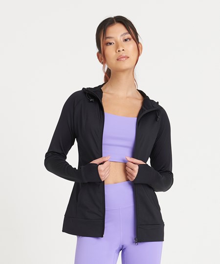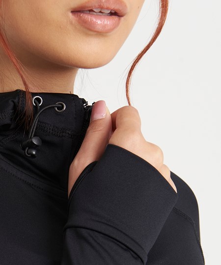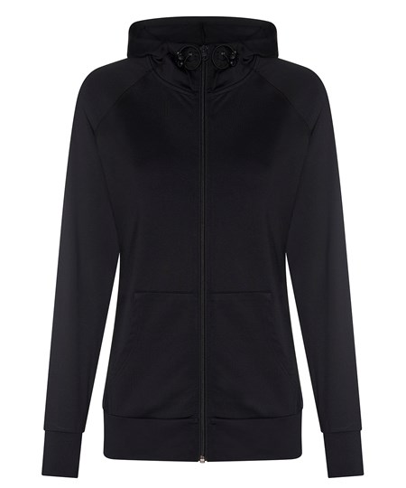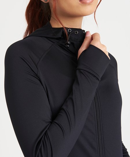 Push your limits with this innovative zoodie. Dual weight and supportive feminine fit allows you to focus on your workout goals. When the nights get chilly or you need a warm up hoody to throw on to and from the gym, the girlie cool contrast zoodie combines wicking performance with lightly brushed fabric on the body. Adjustable attached hood protects from the elements while the raglan sleeves and thumb holes offer great range of motion.