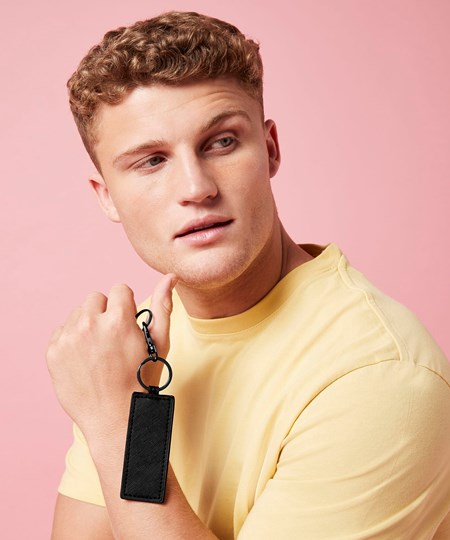 Personalise your Boutique collection with these interchangeable and customisable key clips. Designed for ease of decoration, this 100% leather-look design can be used as a keyring or bag charm. Fine grain Saffiano fabric gives a luxurious finish, while a high-shine, gold metal key clip adds to the premium quality. Also available in circular (BG745) and heart-shaped (BG746) styles.