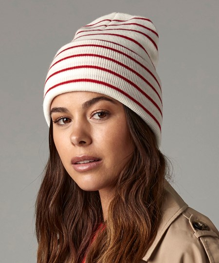 A deep-cuffed beanie adds statement stripes to street-style looks. Inspired by a timeless nod to nautical trends, this is designed to sit high on the head with a close, comfortable fit. Crafted from a blend of acrylic and recycled polyester, it holds its shape whilst keeping out the cold.