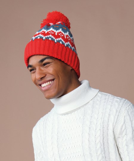 Inspired by classic alpine style, the Retro ski beanie blends vintage charm with modern winter comfort. Featuring a traditional Fair Isle knit and soft-touch self-coloured pom pom, it’s fully lined with recycled microfleece for added warmth. The cuffed design provides a clear area for decoration, making it ideal for après-ski styling, seasonal collections and retro-inspired ranges.