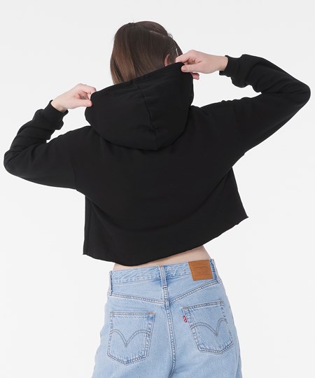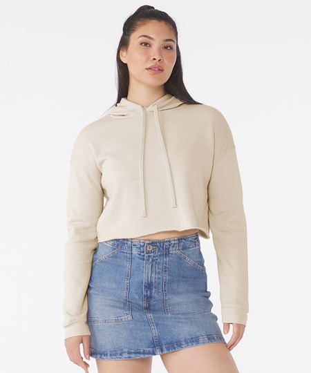 This trendy cropped hoodie is a must have for your fall wardrobe. It's raw edge and dyed-to-match drawstrings make it fashion forward while the polycotton brushed fleece brings an unmatched level of comfort.