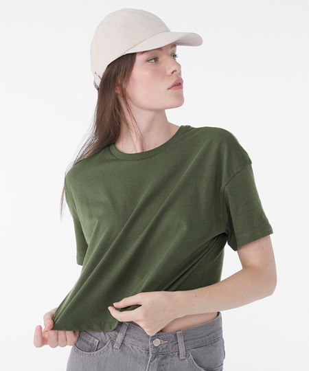 This Jersey crop tee slides right into on-trend streetwear style for summer. With oversized sleeves and a relaxed body,it drops a little lower in the back for an effortlessly cool feel. Fabricated from ultra-soft, lightweight Airlume cotton to flatter, this looser crop features a finished hem and neck binding.