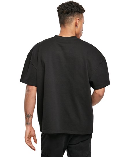 An edgy, men’s tee that satisfies with its wide, oversize fit and heavy cotton fabric. The overlapping shoulders section and classic crew neck round off the urban style of a tee that will stay true to its wearer in any environment. Ideal for refining with embroidery, flock print or screen printing.