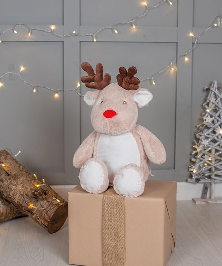 Der Freund und Helfer des Weihnachtsmanns: das Rentier mit Reißverschluss ist aus weichem Stoff gemacht und hat eine knallrote Nase und ein andersfarbiges Geweih. Perfekt geeignet für Stickereien und Thermosublimationsdruck mit Reißverschlusszugang auf der Unterseite.