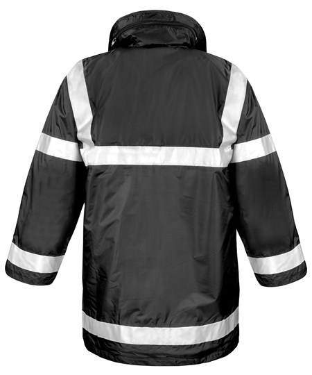 Die beste Wahl für einen angenehmen Arbeitstag. Der RE23A bietet Sicherheit, Funktionalität und hervorragenden Wetterschutz. Ein längerer Schnitt, versiegelte Nähte, eine versteckte Kapuze und eine Windschutzleiste mit Druckknöpfen tragen zum hohen Komfort dieses für schwere Arbeiten geeigneten, Hochsichtbarkeitsmantels für Führungskräfte bei.