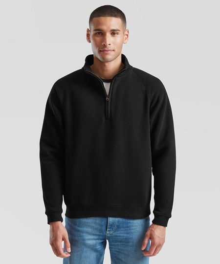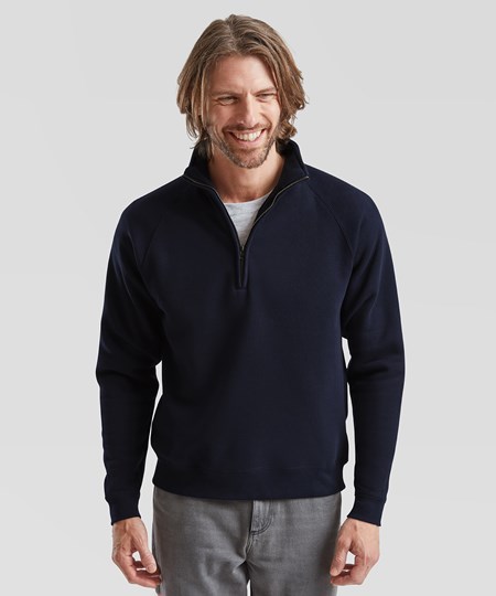 Available in a selection of colours with a covered metal zip for enhanced printability, Fruit’s Premium zip neck sweat is ideal for all kinds of garment decoration. Details include a single Jersey back neck tape for comfort and cotton/elastane waist and cuff ribs and a cadet collar for added warmth.