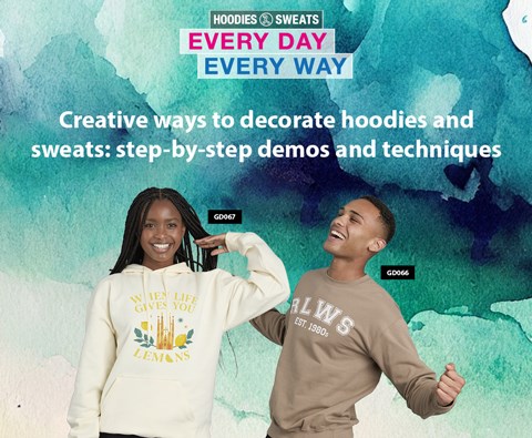 From puff print to high build and screen print, discover creative hoodie and sweat decoration with our step-by-step demos. Featuring Gildan’s new Softstyle™ range, see how simple techniques can turn everyday garments into standout pieces.
