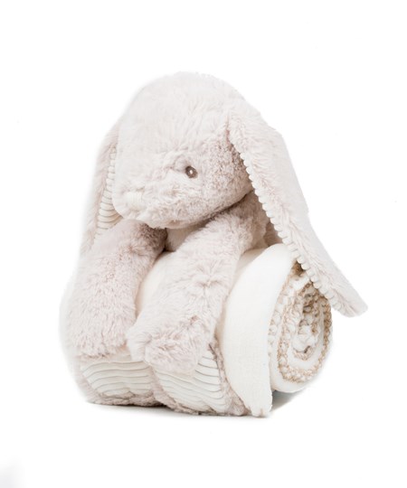 Hop along with the Rabbit and blanket with hook and loop fastening around its paws and feet. Perfect for personalisation and gifting opportunities.