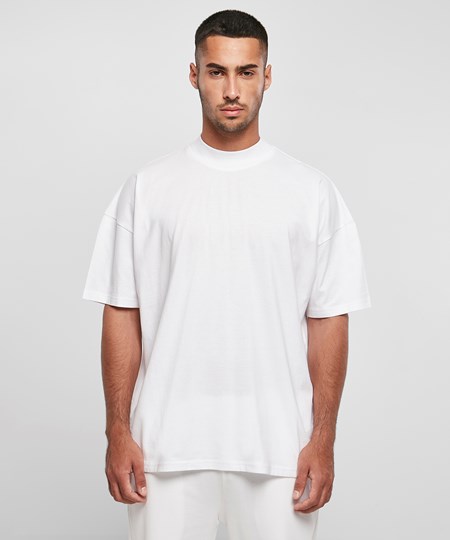 Dit herenshirt van soepel katoen heeft een oversized pasvorm met afhangende schouders en een brede, hoge en geribde ronde hals. Dit T-shirt is perfect voor verdere verfraaiing met een borduurwerk, zeefdruk of flockprint.