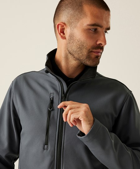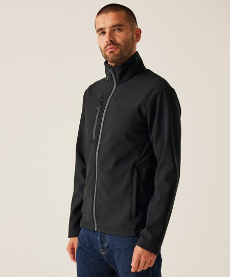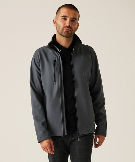 Deze jas is gemaakt van 100% gerecyclede softshell. Sneldrogend, superzacht materiaal houdt je fris en comfortabel. De volledig bedrukbare jas is waterafstotend en windbestendig.
