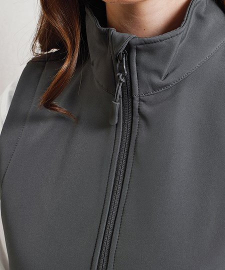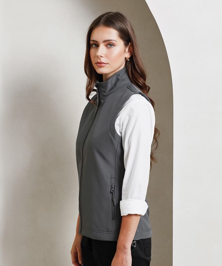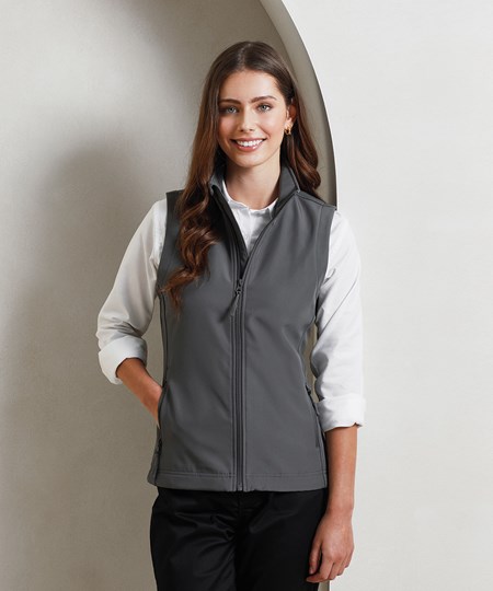 A women’s two-layer softshell gilet carrying Premier’s Windchecker®️ trademark for wind and water resistance through the fabric. Made with certified 100% recycled polyester with n bonded fleece inner layer, this zip-through softshell bodywarmer features handy zipped side pockets and an elasticated drawcord hem for fit. A great versatile outer layer for casual and corporate dressing, featuring a curved hem and stitched side panels for a more feminine fit.