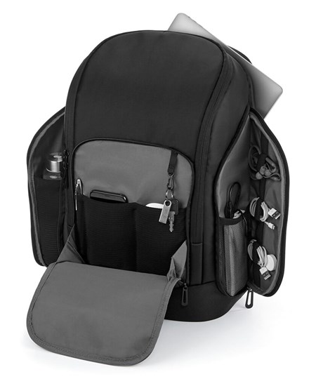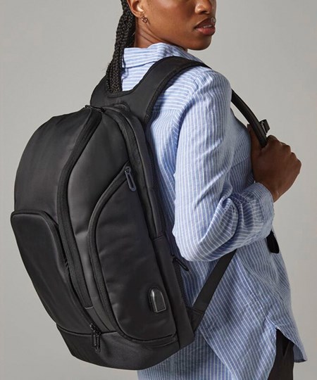 Stay hyper connected and work from anywhere with the Pro-tech charge backpack. Tailored for professional or personal use, this multifaceted backpack is integrated with a USB charging port and power bank socket to keep tech devices powered up on the move.