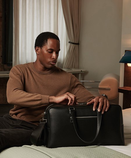 All styles in the Tailored Luxe collection are made from a premium leather-like fabric with a pebbled grain for an elevated finish. Each design has a structured silhouette, which, when combined with a minimalist aesthetic, delivers a contemporary alternative to traditional tailored styling. Angular edges and boxy shapes are the epitome of modern luxury in this weekender – a sophisticated way to travel with all of your essentials, its light, luxurious lining adding the perfect finishing touch.
