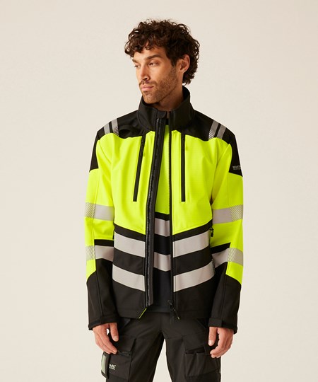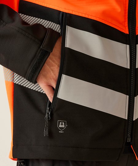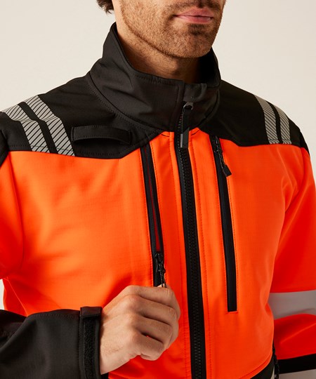 The Hi-Vis X-Pro 3-layer softshell jacket (Class 2) from Regatta Professional combines high-visibility technology and weather protection. Engineered with a state-of-the-art 3-layer softshell in a water-repellent finish, it’s perfect for outdoor work – the durable and warm grid fleece backing keeps you cosy. Boasting a detachable hood and pit zip for optimal comfort, this work jacket adapts to your needs; and it doesn’t compromise on functionality, complete with a radio loop for convenience and an impressive six pockets for seamless storage. Cutting-edge ID reflection technology ensures easy identification in low-light settings.