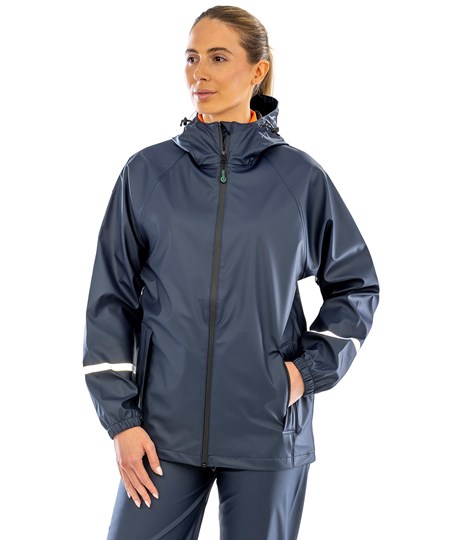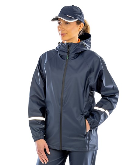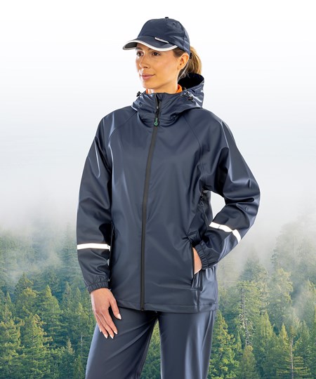Prism PU waterproof jacket with reflective bands and recycled backing