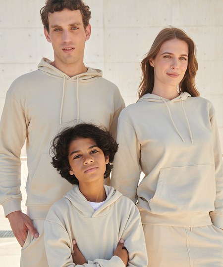 A classic, relaxed-fit, unisex hoodie – elevated, thanks to the flattering curved hem. Made from a mixture of regenerated cotton and recycled polyester, the sustainable generation is here. Brand-free, for easy rebranding.