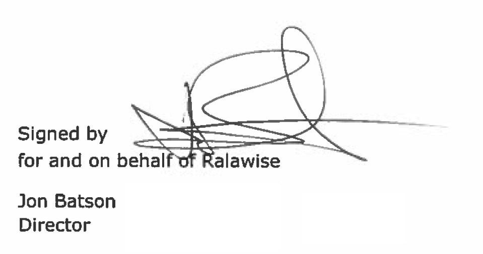“Ralawise” means the business whose company Number is 1362849 and whose registered office is at Unit 112, Tenth Avenue, Zone 3, Deeside Industrial Park, Deeside, Flintshire, CH5 2UA