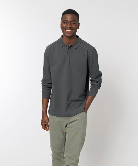 This unisex long sleeve polo, with a comfortable boxy fit and finished in refined detailing, is the perfect item to be in style for any occasion.
